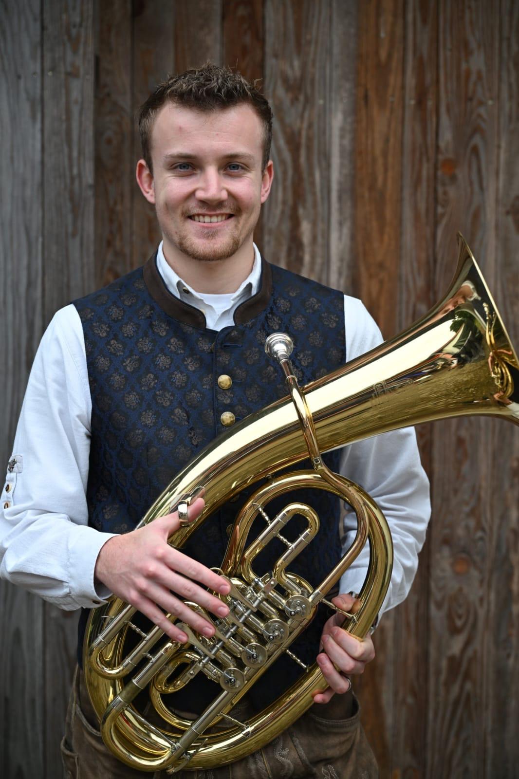 Marcel Schoder ist in Augsburg geboren und hat eine abgeschlossene Ausbildung als Softwareentwickler. Aktuell ist er Tenorhornist im Heeresmusikkorps Ulm. Bei Grenzblech ist er Hauptkomponist, Arrangeur und musikalischer Leiter – und damit der kreative Kopf hinter unserem Sound.